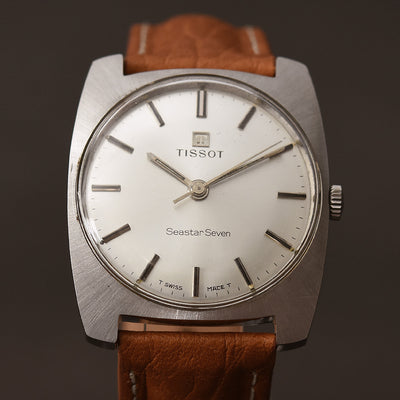 This watch houses a quality 781 series caliber, running on 17 jewels with sweep seconds. It is cased in a monoblock stainless steel cushion shaped case still retaining its original beautiful sunburst finish, with mint crystal and original signed crown.