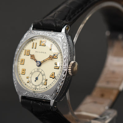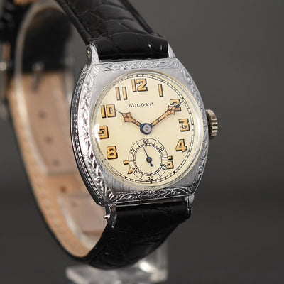 empressissi™ is pleased to offer this early and sought after Art Deco BULOVA wrist watch for men - a unique model from 1927 in white gold filled case with a classic Art Deco design.