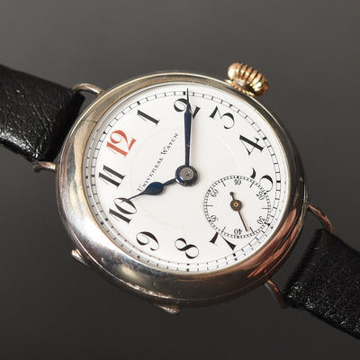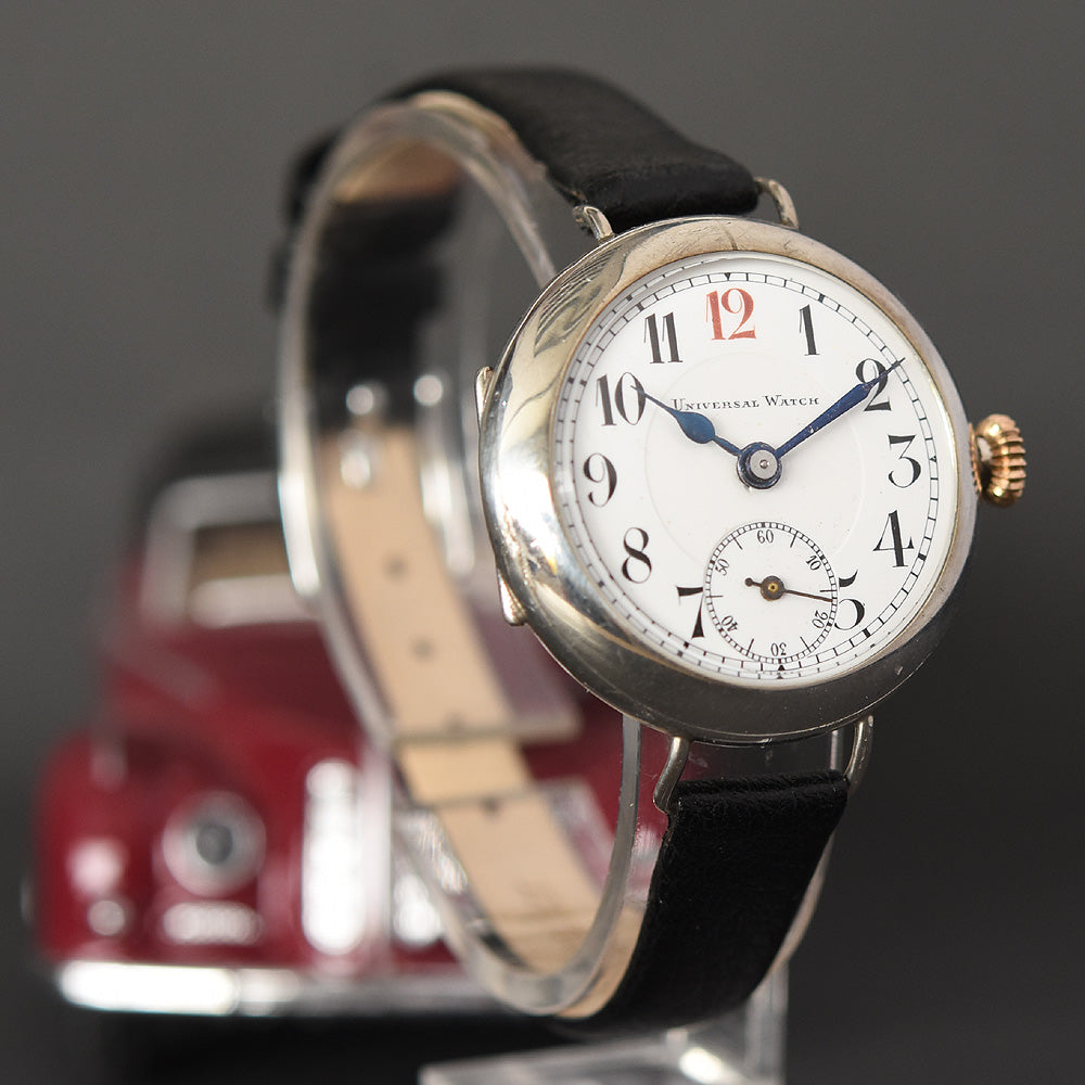 empressissi™ is pleased to offer this very rare and most impressive UNIVERSAL Swiss watch for men from the first world war period in classic trench style.