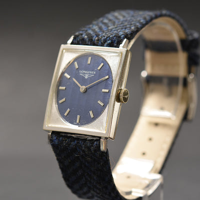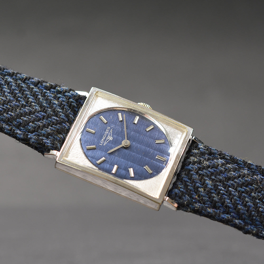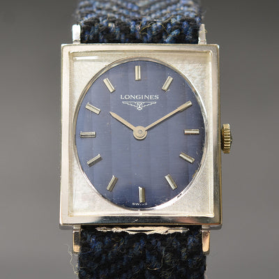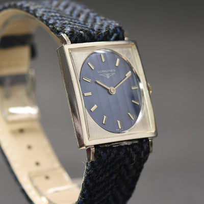 empressissi™ is pleased to offer this unique top class Swiss made LONGINES dress watch from the mid 70s with a unique metallic blue straight-line design dial.