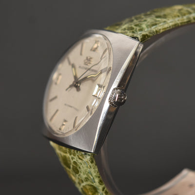 The watch houses a hi beat ETA based automatic movement, running well on 17 jewels with non quick set date. It is running well and keeping good time. The movement is cased in a monoblock stainless steel cushion shaped case in very good condition, still retaining its original sunburst finish. The case has a mint crystal and original B signed crown.