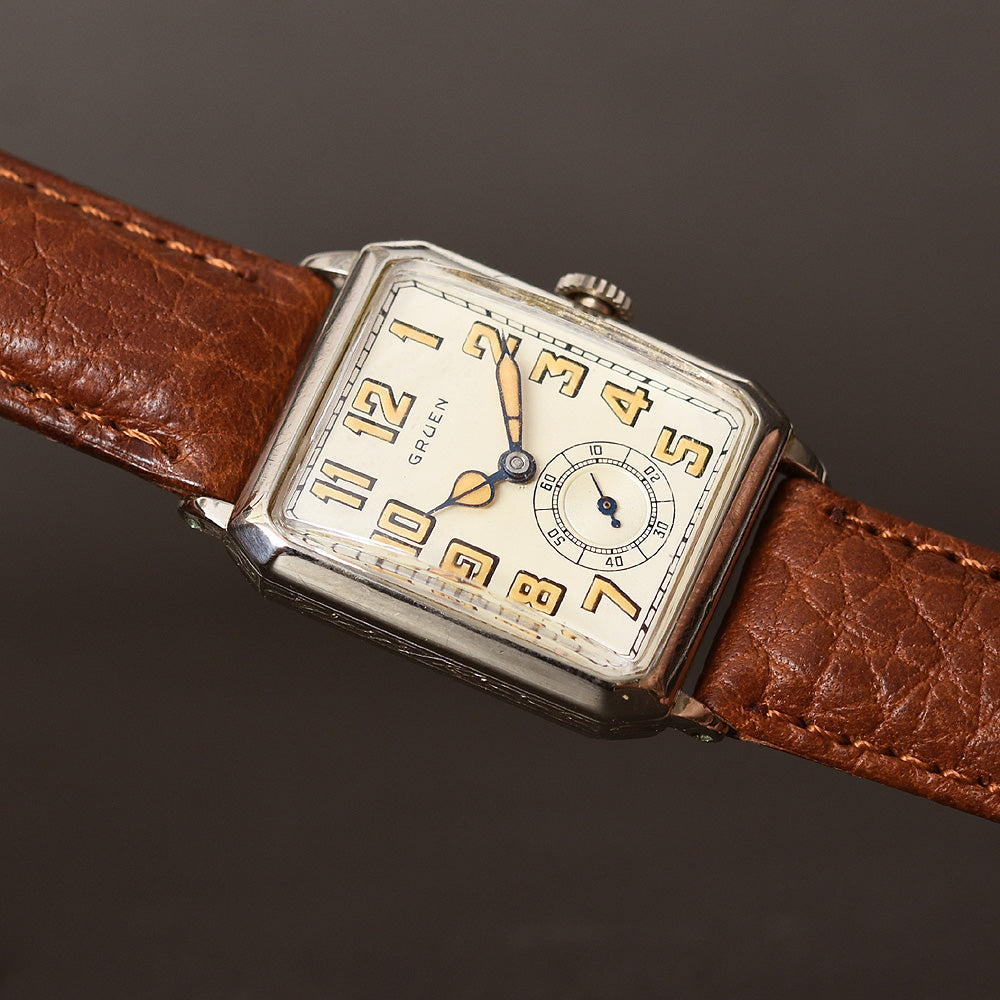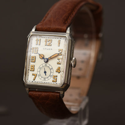 empressissi™ is pleased to offer this early and sought after Art Deco GRUEN wrist watch for men - a unique model from the late 20s in white gold filled case with a classic Art Deco octagon design.