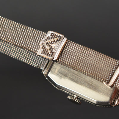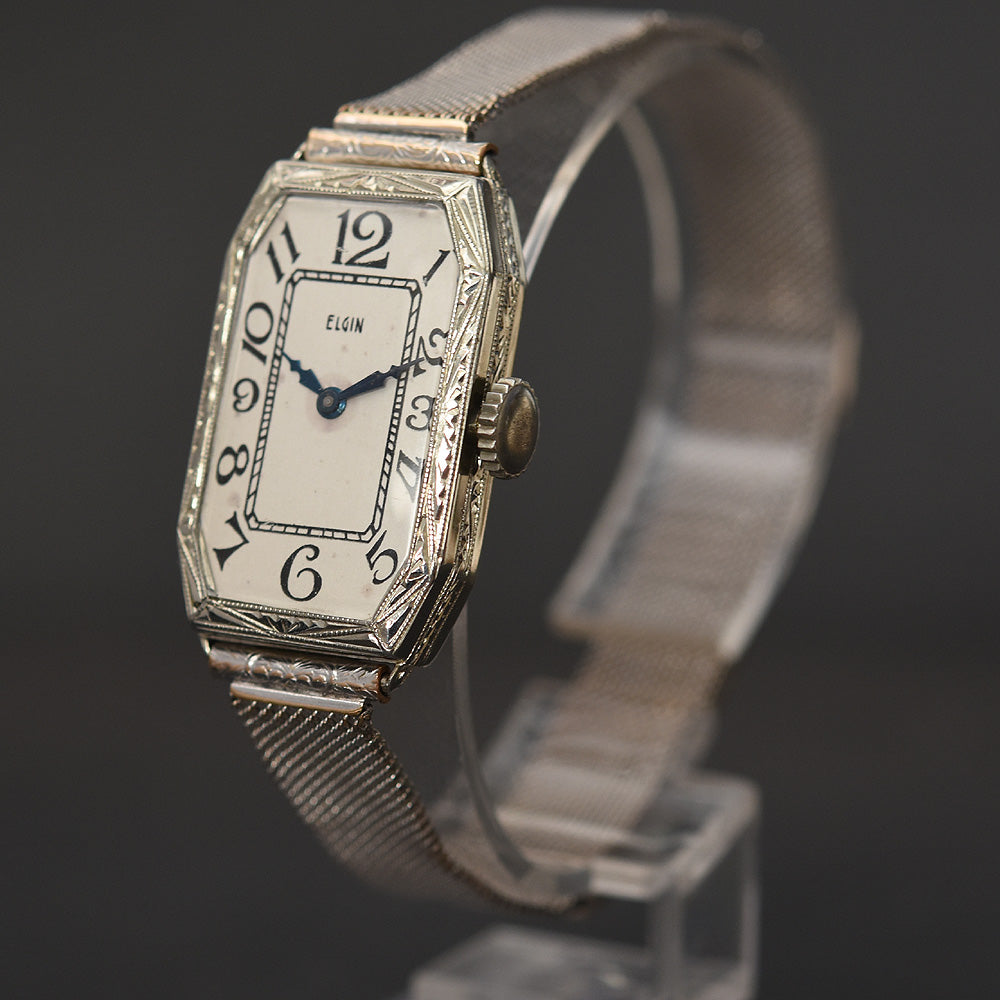 empressissi™ is pleased to offer this early and sought after American ELGIN wrist watch with gorgeous, classic Art Deco design in 14K white gold. It is ready to wear.