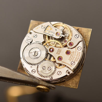 The dial appears to have been restored in the past and has the correct tone and print, pearl tone surface with raised gold plated markers/numerals and an original set of hands.
