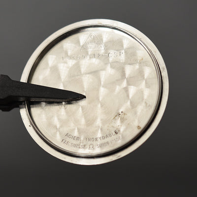 The dial of this watch was professionally restored in the past in a nice eggshell tone and appears to be with the correct design. It has raised Rhodium plated markers/numerals and an original set of slightly aged hands. The dial has had its luminous material restored as well.