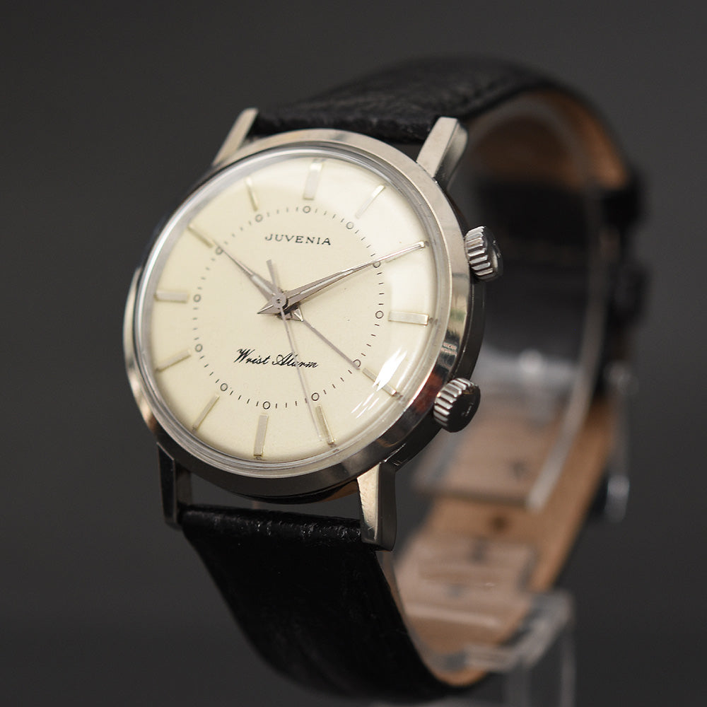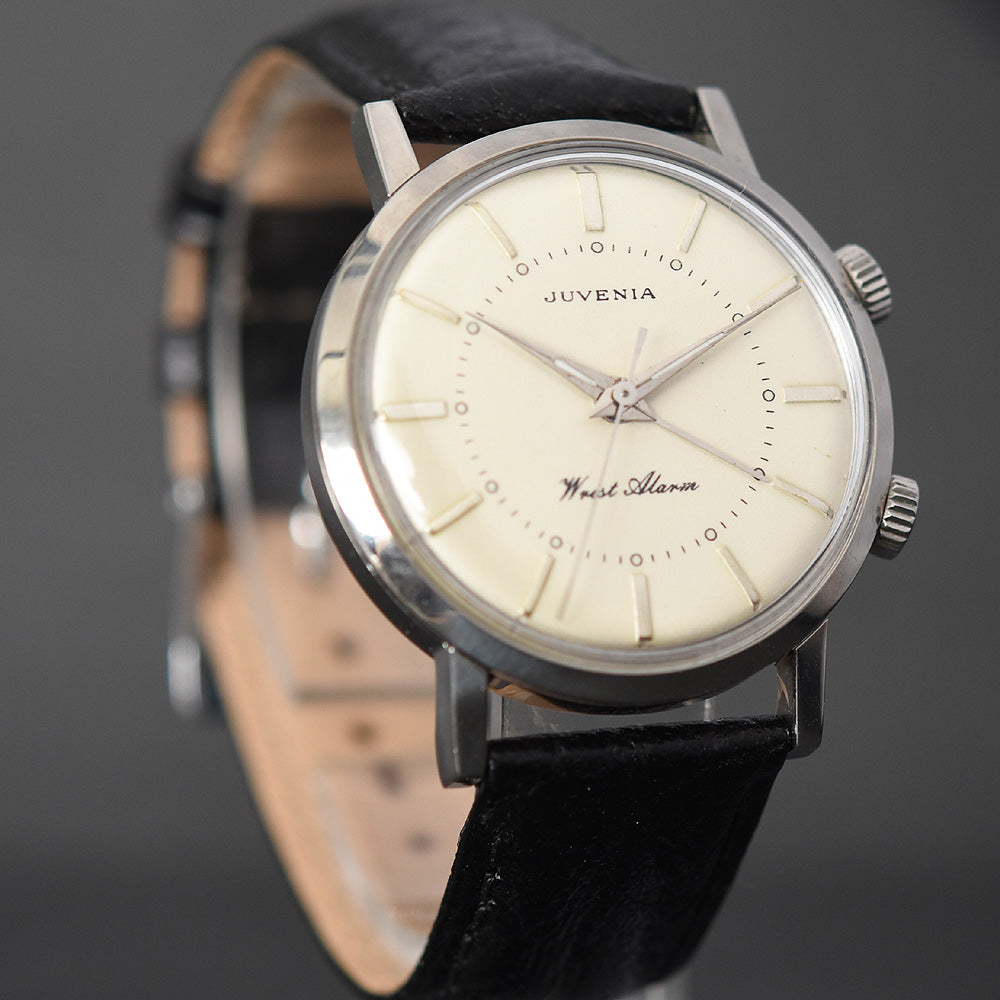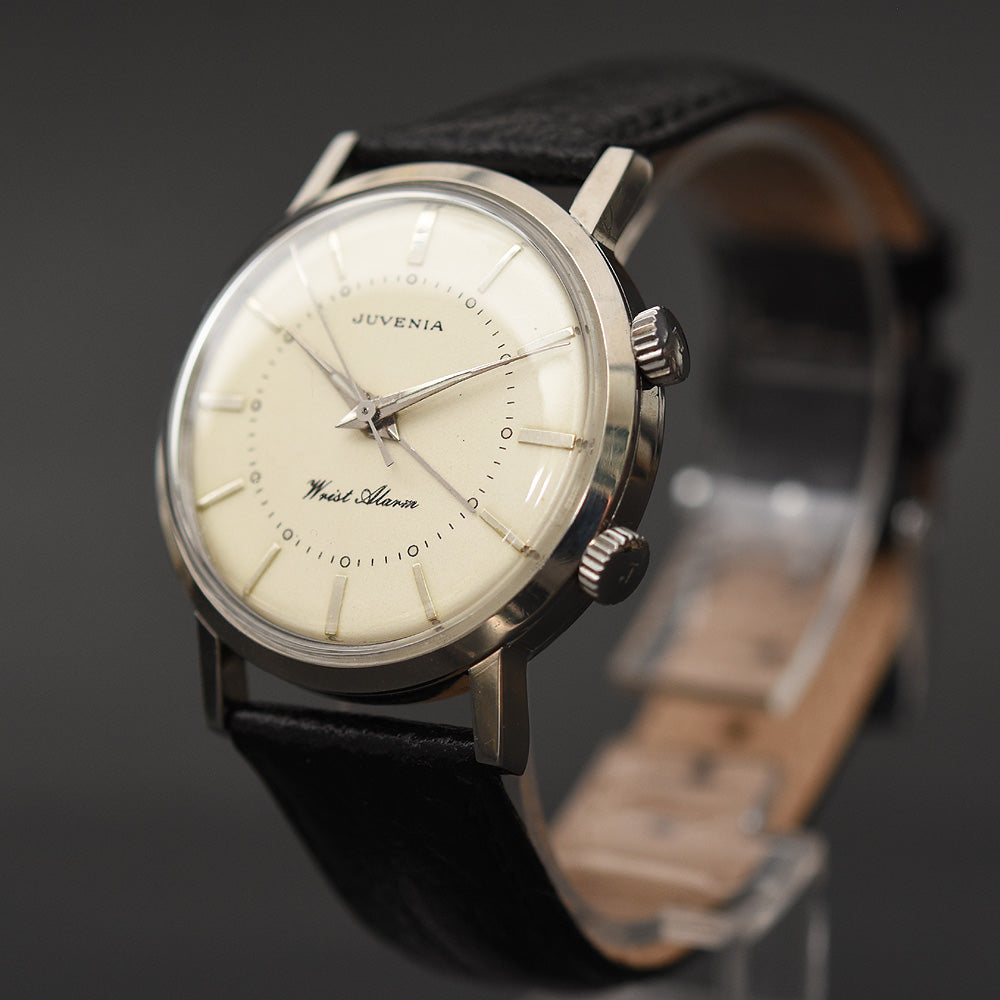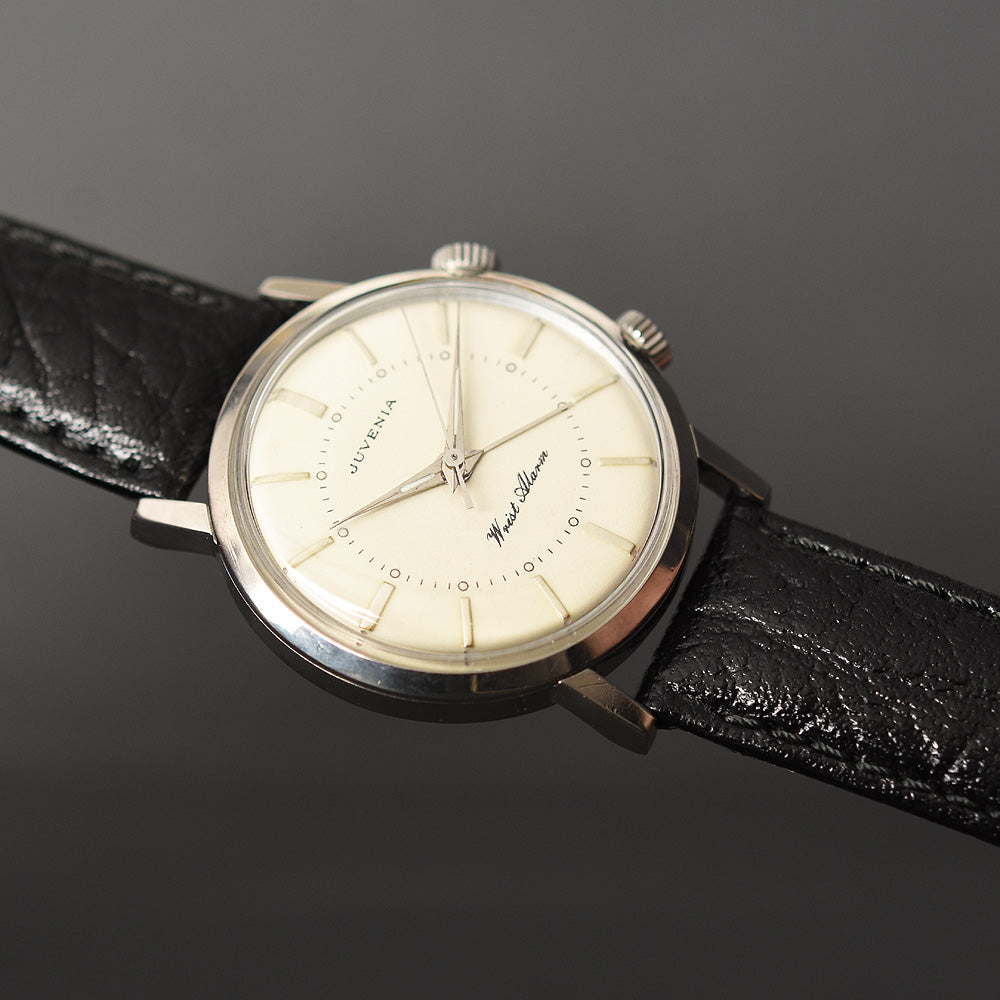 empressissi™ is pleased to offer this uncommon JUVENIA Alarm wrist watch for men from the late 50s with a mechanical alarm complication, in working order and excellent aesthetic condition.