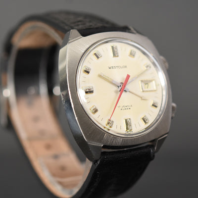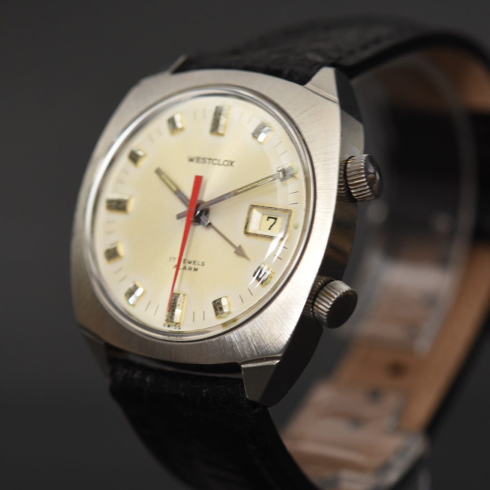empressissi™ is pleased to offer this fantastic and all original WESTCLOX Alarm wrist watch for men from the late 60s with mechanical alarm complication, in working order and excellent aesthetic condition.