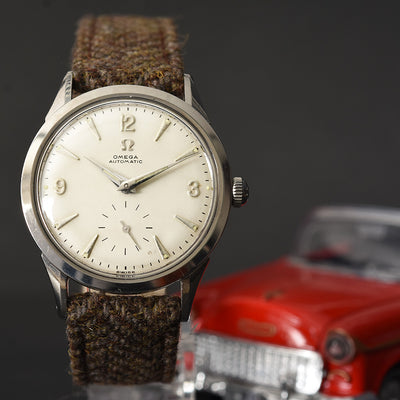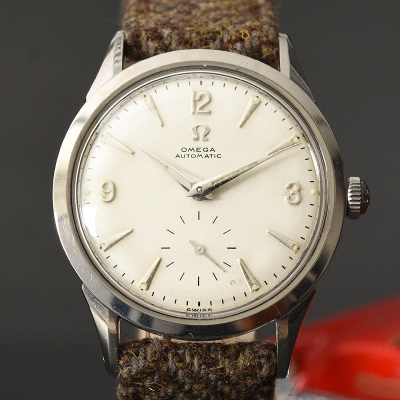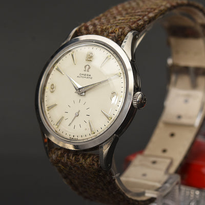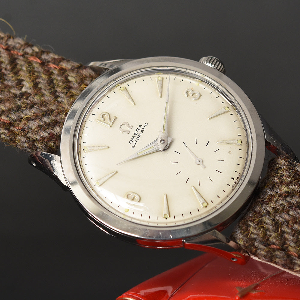 empressissi™ is pleased to offer this fantastic early OMEGA watch for men from the mid 50s with classic early full rotor automatic movement and a design known as Ref FX-6040 in stainless steel. This is a robust and elegant watch, ready to wear.