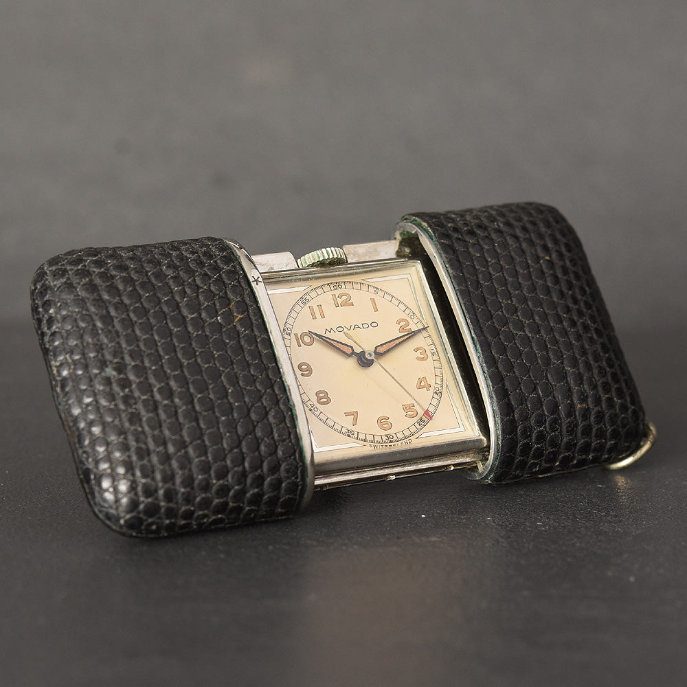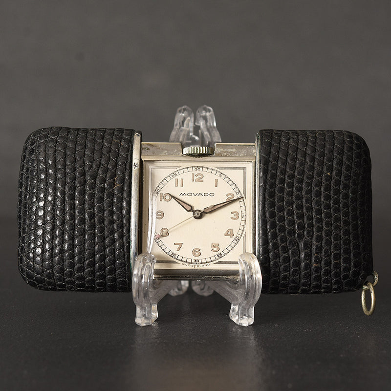This amazing little Movado measures 50x35mmwhen closed and 75x30mm when open, 15mm thick.
