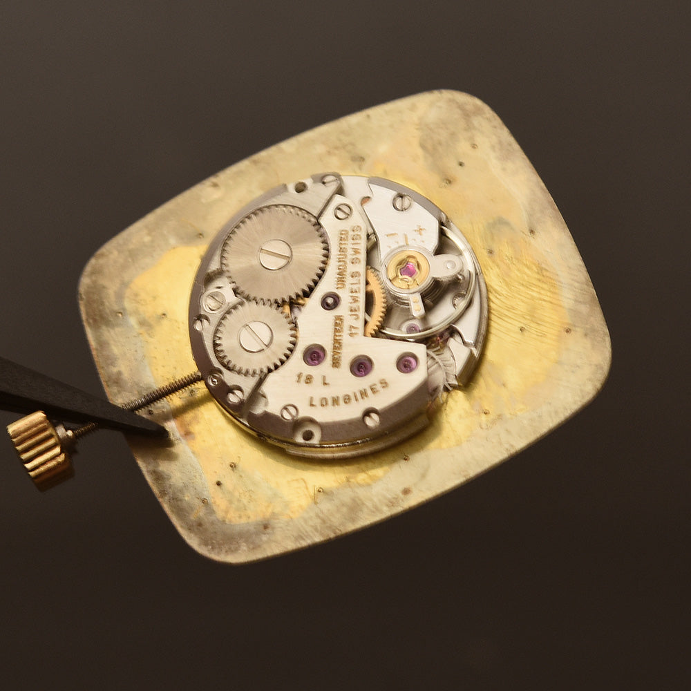The watch houses a manual wind Longines 18L hi beat manual wind/crown set caliber, in overall excellent condition, running strong and keeping accurate time. The movement is cased in a gold plated cushion shaped case with original crown, bow and crystal, all in great shape.