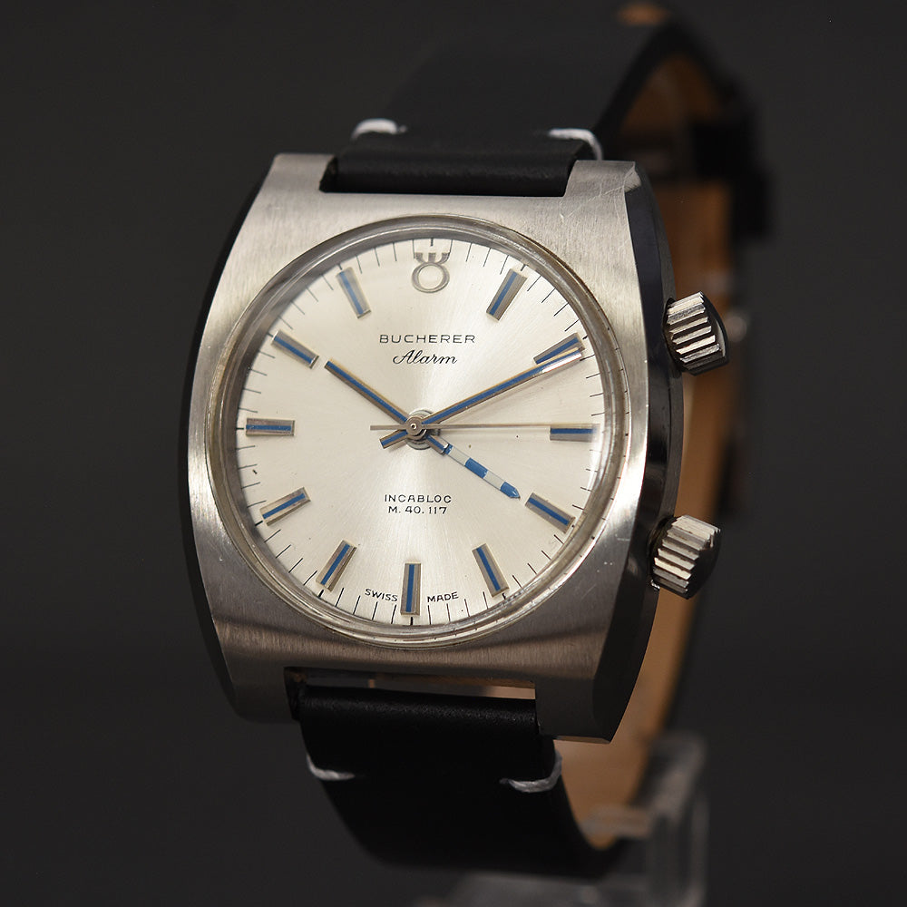 empressissi™ is pleased to offer this fantastic and sought after BUCHERER Alarm wrist watch for men made by MILUS from the mid 70s with mechanical alarm complication, in perfect working order and excellent aesthetic condition, barely used. This is part of a BUCHERER collection we recently acquired.