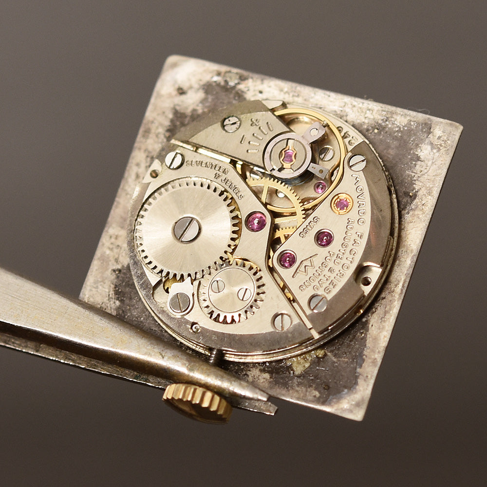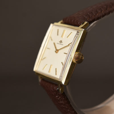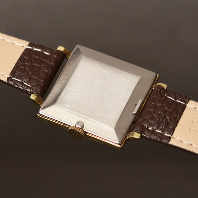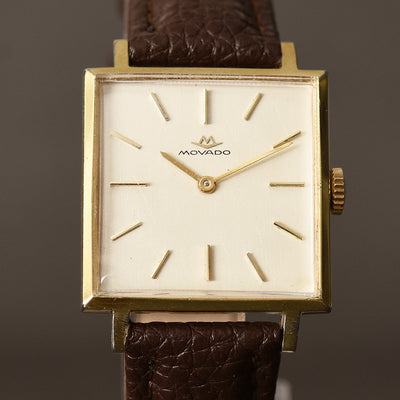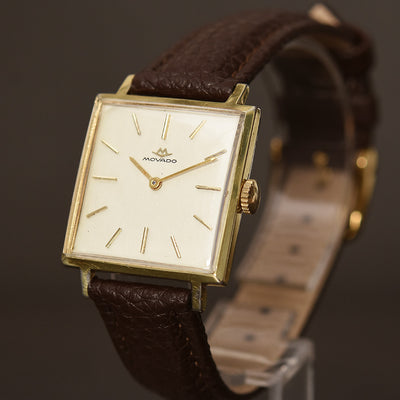 The watch houses a Movado 246 hi beat manual wind Swiss caliber running on 17 jewels. It is cased in a gold plated case with minor wear and stainless back, both present very nicely with a good crown and a mint low dome crystal.