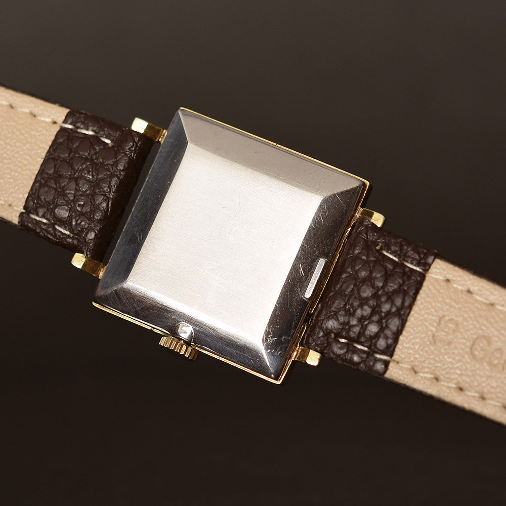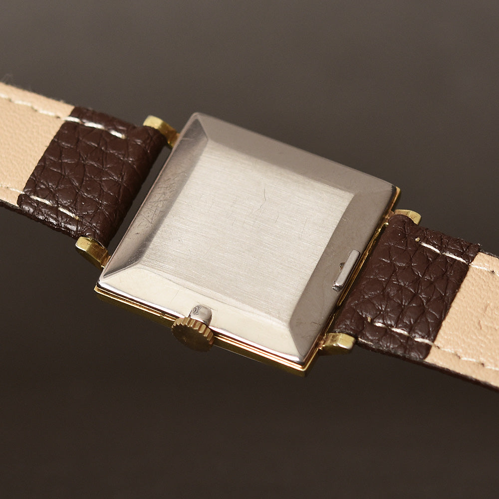 The dial was professionally restored in the past in the correct pearl tone and has solid gold applied markers with an original set of hands.